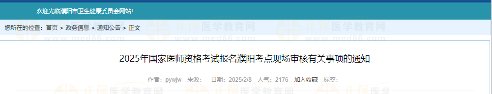 河南濮陽2025年臨床執(zhí)業(yè)醫(yī)師考試報名|審核要求公告