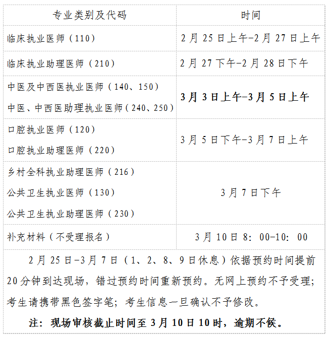2025年現(xiàn)場審核必須通過網(wǎng)上預(yù)約,并依據(jù)預(yù)約時間前來審核,未在網(wǎng)上預(yù)約或不在預(yù)約時間內(nèi)一律不予審核(特殊情況請聯(lián)系所在地衛(wèi)生健康行政部門、市直醫(yī)療衛(wèi)生機(jī)構(gòu)出具相關(guān)證明,并由所在地衛(wèi)生健康行政部門、所在醫(yī)療衛(wèi)生機(jī)構(gòu)部門負(fù)責(zé)人電話預(yù)約后另行處理)。