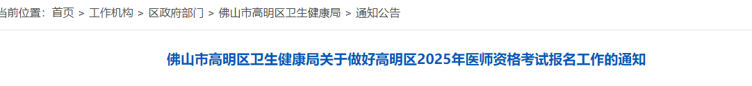 (3)我局根據(jù)上級主管部門文件和要求整理制定了《佛山市高明區(qū)2025年醫(yī)師資格考試報名相關要求》(附件1)供各單位的考生閱讀并指導考生按照要求報名。