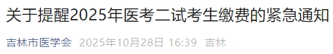 緊急!吉林市2025年臨床執(zhí)業(yè)醫(yī)師(二試)10月30日上午現(xiàn)場補繳!