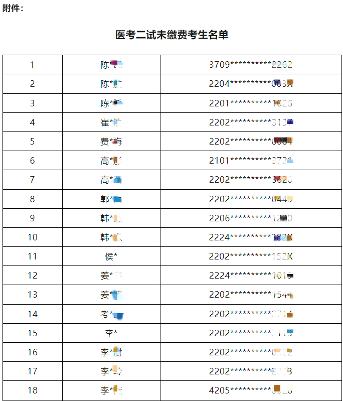 吉林考點目前尚有部分已報名參加吉林考點2025年醫(yī)師資格考試醫(yī)學綜合考試“一年兩試”二試但未在規(guī)定時間內(nèi)完成考試繳費的考生(以下簡稱醫(yī)考二試未繳費考生),現(xiàn)將醫(yī)考二試未繳費考生名單公布如下,為避免因不繳費造成無法參加考試現(xiàn)象發(fā)生,請上述考生務必認真核對繳費情況,于2025年10月30日(星期四)上午8:30-11:00到吉林市醫(yī)學會進行現(xiàn)場繳費,再次逾期不繳費視為考生本人自動放棄本年度醫(yī)考二試!咨詢電話:68066858 68066857
