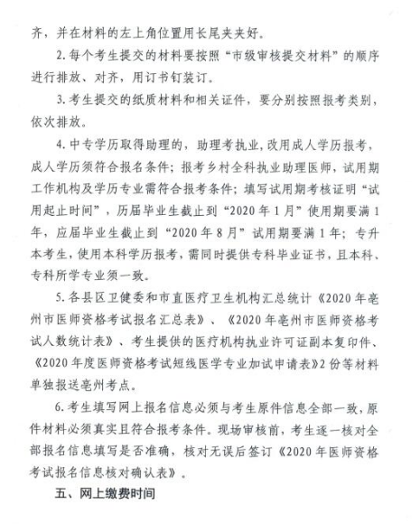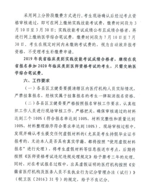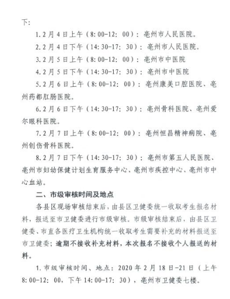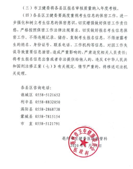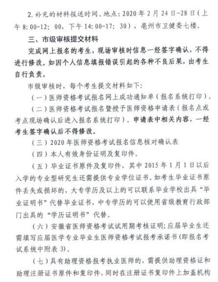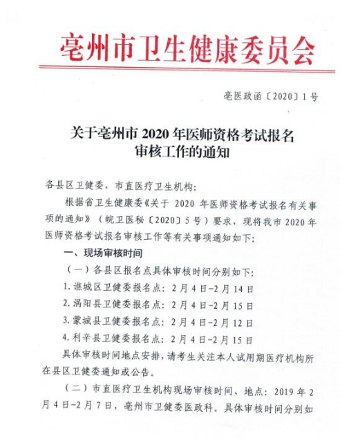 安徽亳州2020年臨床執(zhí)業(yè)醫(yī)師報(bào)名及現(xiàn)場(chǎng)確認(rèn)審核通知