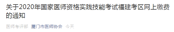 廈門市2020年臨床執(zhí)業(yè)醫(yī)師網(wǎng)上繳費時間及繳費標(biāo)準(zhǔn)