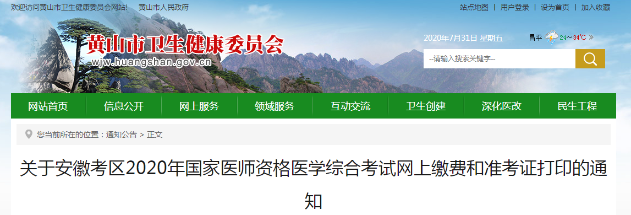 2020年黃山市臨床執(zhí)業(yè)醫(yī)師醫(yī)學(xué)綜合筆試網(wǎng)上繳費(fèi)時(shí)間及繳納標(biāo)準(zhǔn)