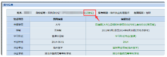 經(jīng)實(shí)踐技能考試身份核驗后,截至目前仍有302人因各種因素,無法完成考生身份核驗。請考生及時登錄“湖北考區(qū)醫(yī)師資格個人申報平臺”查詢身份核驗狀態(tài)(如下圖),未完成身份核驗的考生,請于8月20日前攜帶本人有效身份證件前往所屬考點(diǎn)或報名點(diǎn)通過身份證識別儀完成核驗身份,逾期未進(jìn)行身份核驗的考生將影響參加醫(yī)師資格考試醫(yī)學(xué)綜合筆試。