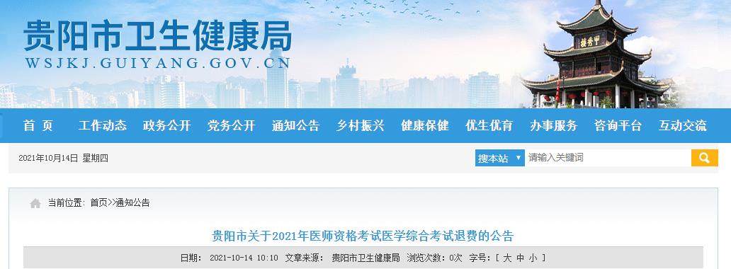 貴陽市關(guān)于2021年臨床執(zhí)業(yè)醫(yī)師資格考試醫(yī)學綜合考試退費的公告