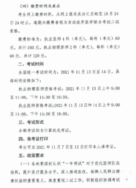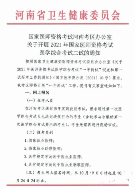 河南考區(qū)2021年臨床執(zhí)業(yè)醫(yī)師一年兩試報(bào)名通知紅頭文件