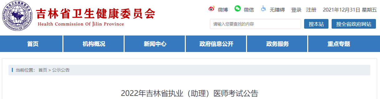 2022年吉林省臨床執(zhí)業(yè)(助理)醫(yī)師考試公告