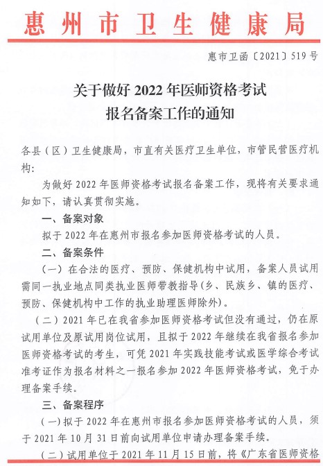 惠州考點(diǎn)關(guān)于做好2022年醫(yī)師資格考試報(bào)名備案工作的通知