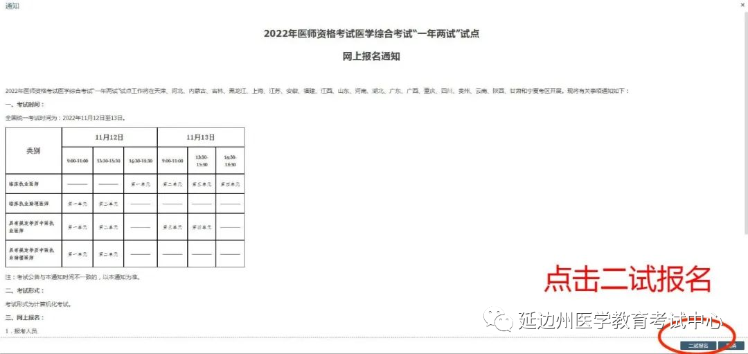 5.仔細(xì)閱讀彈出的通知,點(diǎn)擊右下角"二試報(bào)名"
