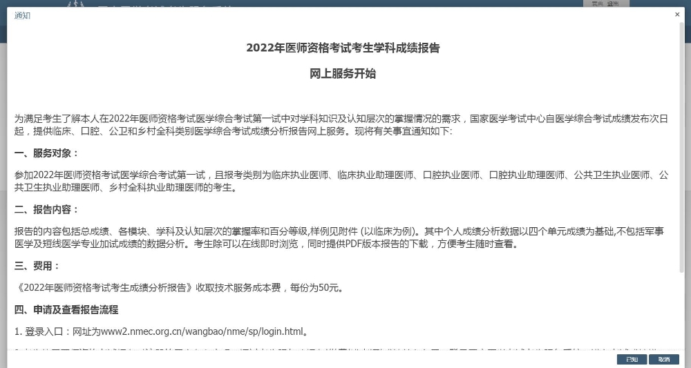 3.報名方式:請具有二試報名資格的考生,在國家醫(yī)學考試考生服務系統(tǒng)“考試成績”欄目下將會顯示二試報名界面,考生閱讀報考要求后進行考試報名。顯示“二試報名”即預報名成功,進入繳費環(huán)節(jié)。具體步驟如下: