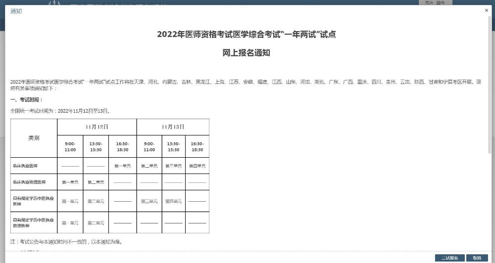 一年兩試地區(qū)動態(tài):全國2022年醫(yī)師筆試(二試)報名及考試相關通知匯總