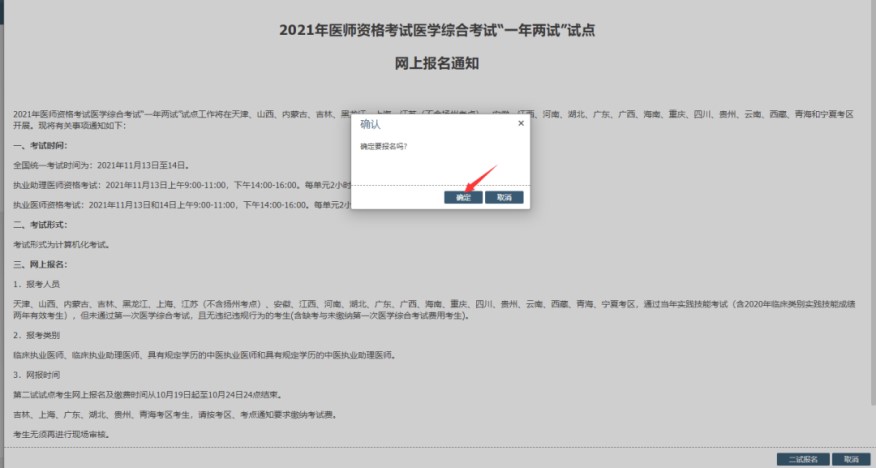 第五步:點擊“確定”自動跳轉至考試報名欄目,并顯示“二試報名”灰色水印。