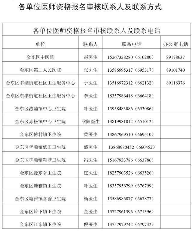 2.各單位醫(yī)師資格報(bào)名審核聯(lián)系人及聯(lián)系方式