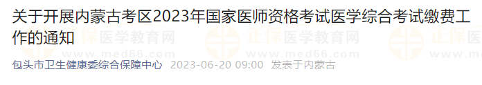 內(nèi)蒙古包頭官方發(fā)布2023年國(guó)家醫(yī)師資格考試醫(yī)學(xué)綜合考試?yán)U費(fèi)通知, 請(qǐng)相關(guān)考生于2023年6月28日-7月4日24時(shí)進(jìn)入國(guó)家醫(yī)學(xué)考試網(wǎng)進(jìn)行網(wǎng)上繳費(fèi),具體通知內(nèi)容如下: