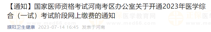 河南濮陽(yáng)考點(diǎn)2023年臨床執(zhí)業(yè)醫(yī)師綜合筆試網(wǎng)上繳費(fèi)7月31日截止!