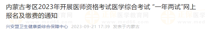 內(nèi)蒙古興安盟2023年臨床執(zhí)業(yè)醫(yī)師“兩試”報(bào)名及繳費(fèi)9月22日開始!