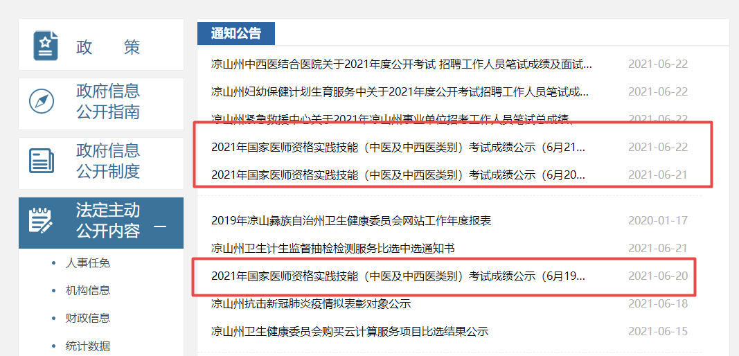 涼山市2021年執(zhí)業(yè)醫(yī)師實(shí)踐技能考試成績(jī)公示