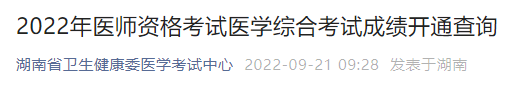 湖南省衛(wèi)生健康委醫(yī)學(xué)考試中心2022年醫(yī)師資格考試醫(yī)學(xué)綜合考試成績(jī)開通查詢