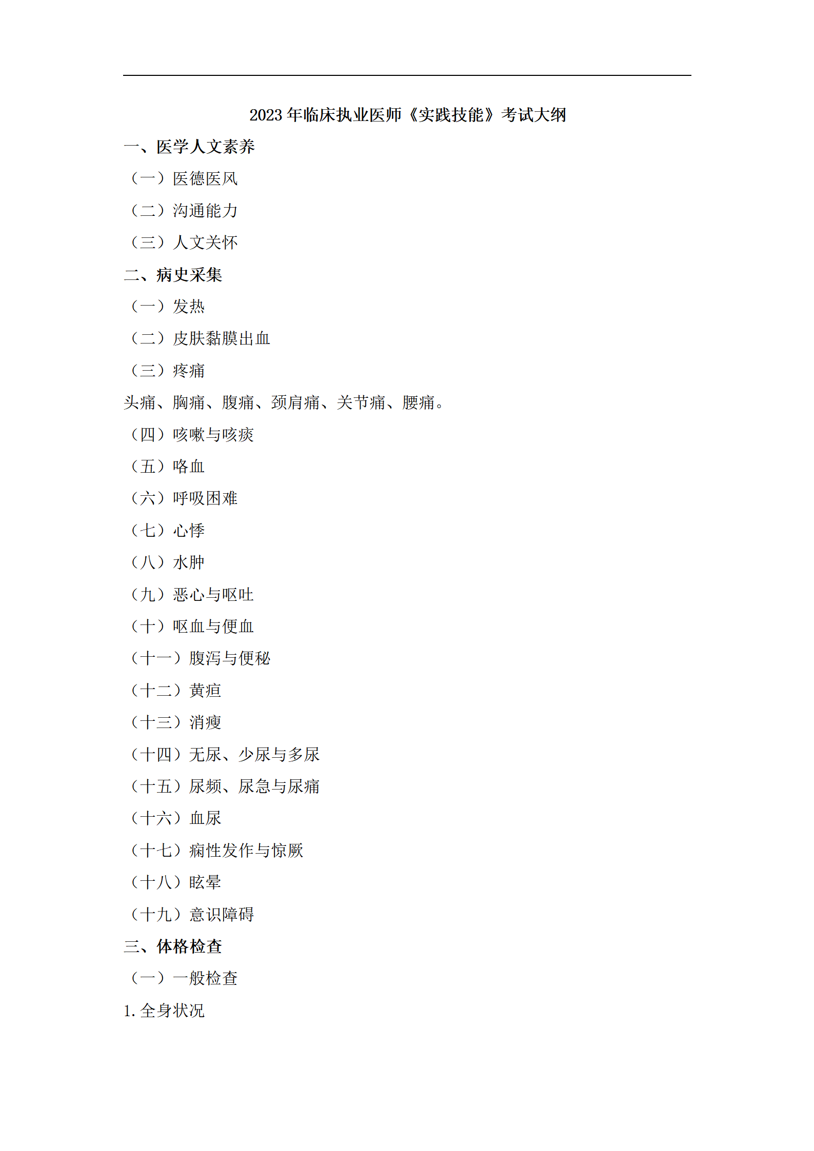 2023年臨床執(zhí)業(yè)醫(yī)師考試《實踐技能》考試大綱在線預(yù)覽