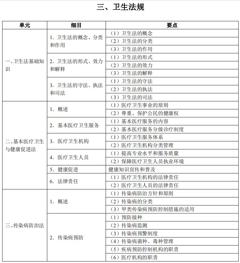 2024年臨床執(zhí)業(yè)醫(yī)師《衛(wèi)生法規(guī)》考試大綱