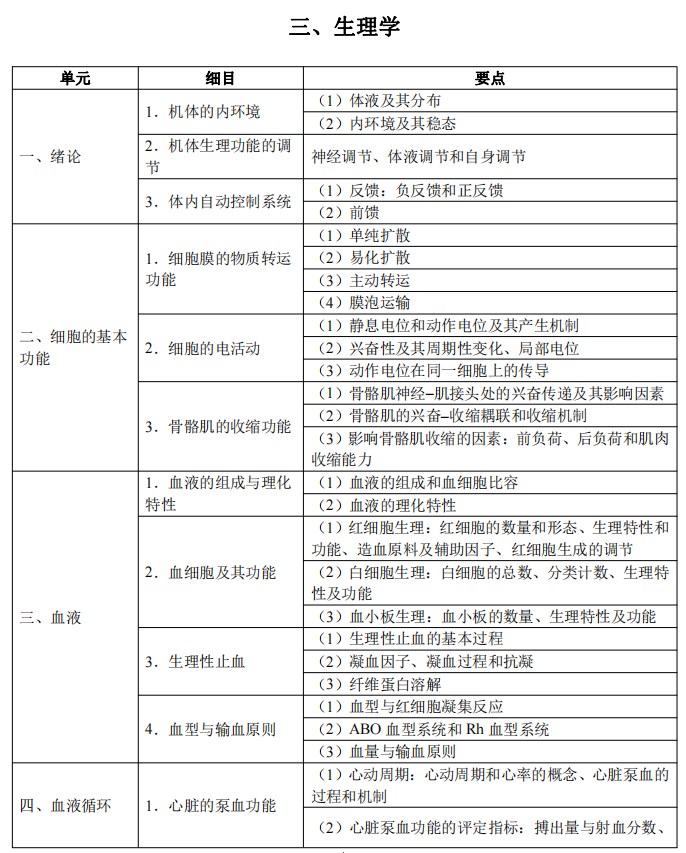 2025年臨床執(zhí)業(yè)醫(yī)師《生理學(xué)》考試大綱
