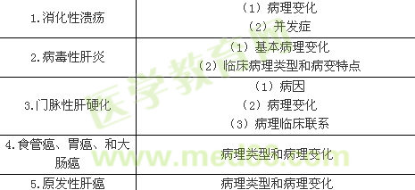 | 2.胰腺疾病 | (1)糖尿病的類型、病因及病理變化 (2)胰腺腫瘤的類型及病理變化 |