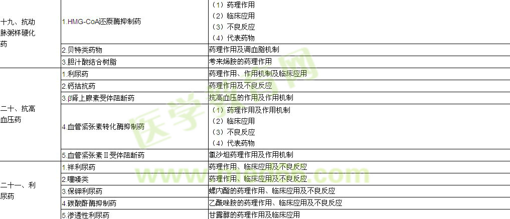 | 3.利尿藥 | (1)螺內(nèi)酯的藥理作用和臨床應(yīng)用 (2)呋塞米的藥理作用和臨床應(yīng)用 |