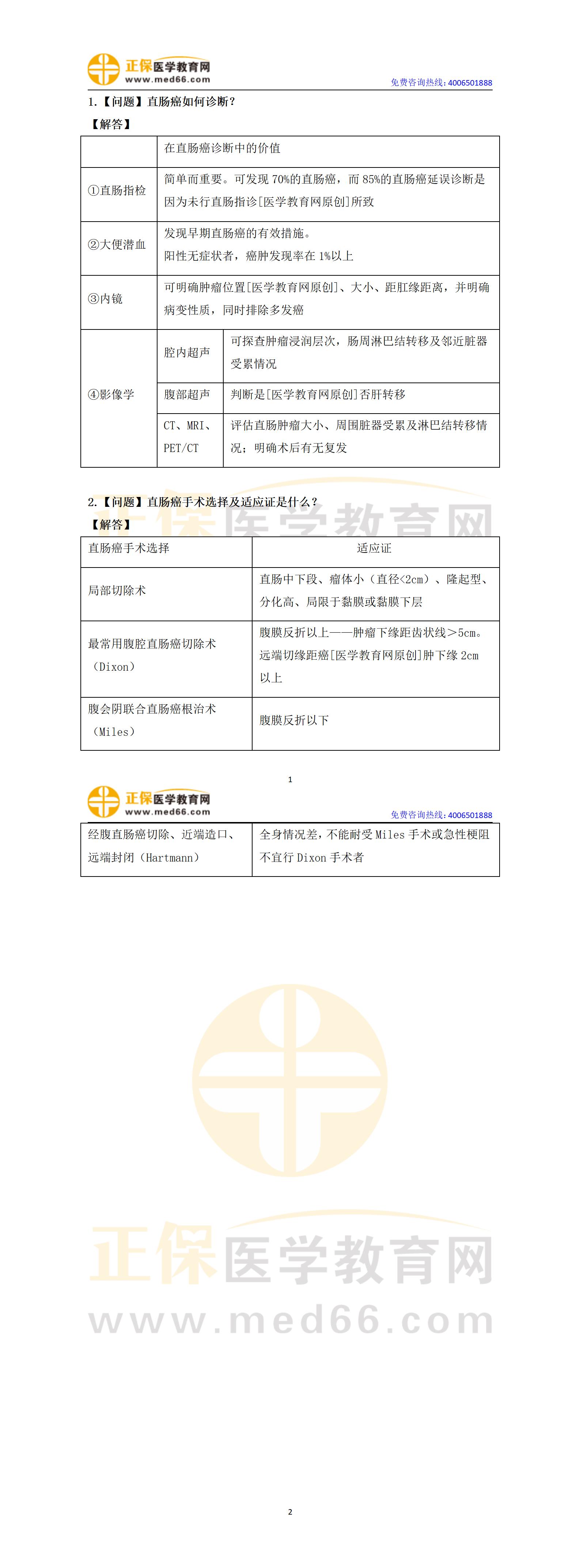 2.【問題】直腸癌手術(shù)選擇及適應(yīng)證是什么?
