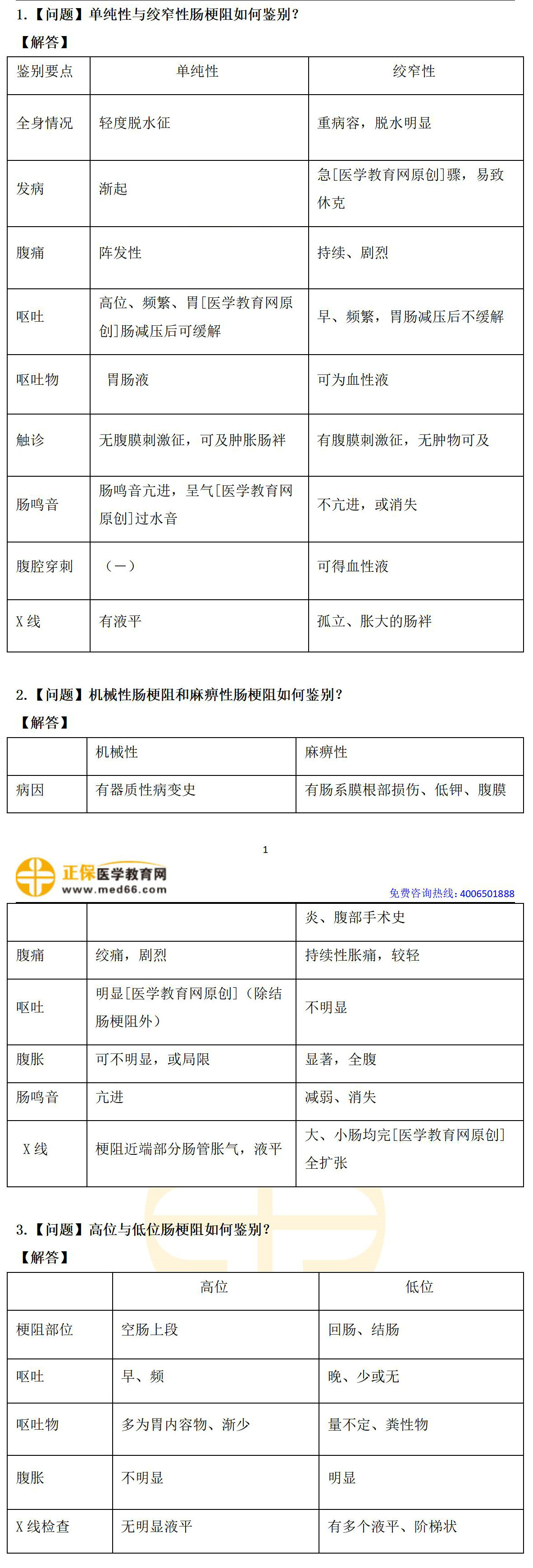 1.【問題】單純性與絞窄性腸梗阻如何鑒別?