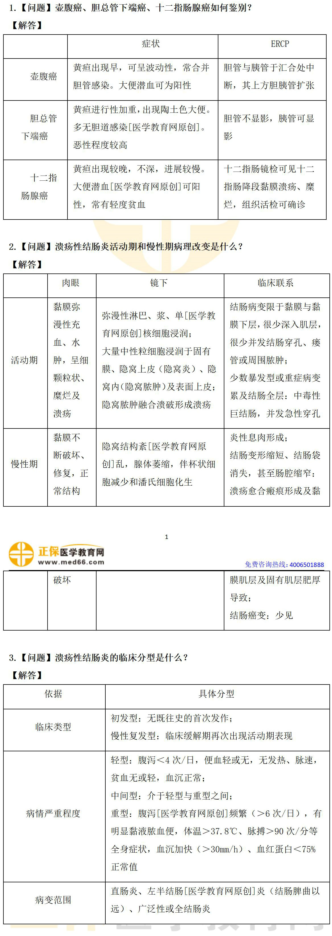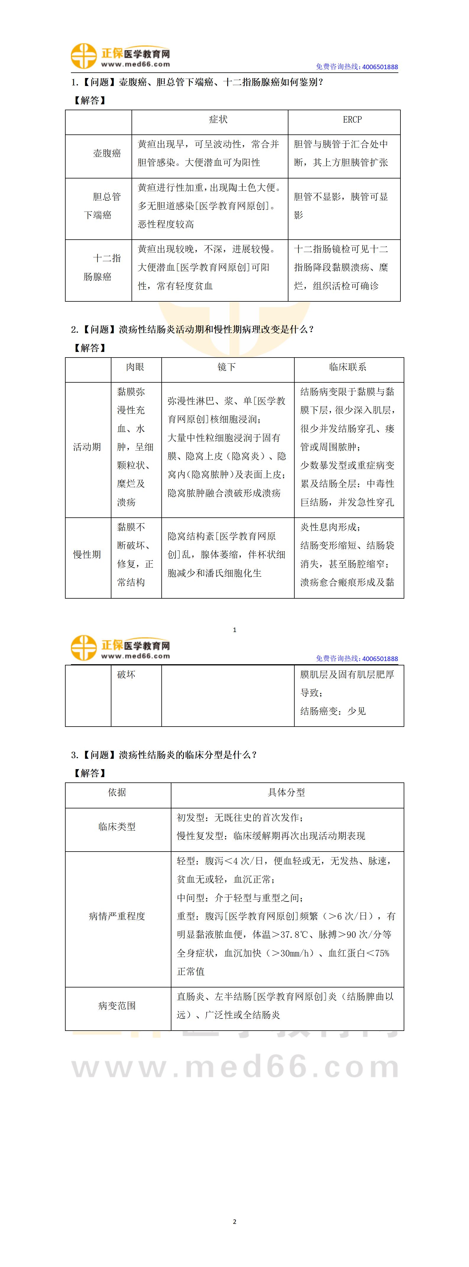 1.【問題】壺腹癌、膽總管下端癌、十二指腸腺癌如何鑒別?