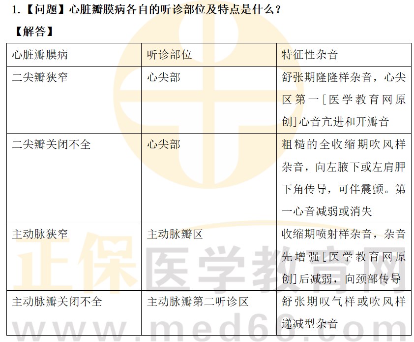 1.【問題】心臟瓣膜病各自的聽診部位及特點是什么?