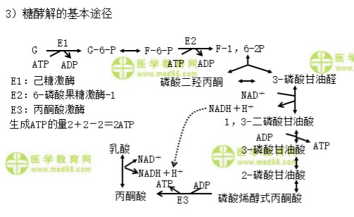 (1)糖(無(wú)氧)酵解:在缺氧情況下,葡萄糖生成乳酸的過(guò)程稱之為糖酵解。
