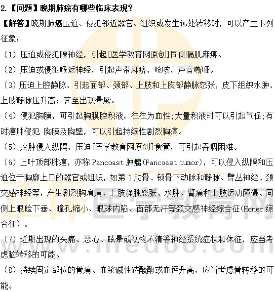 2.【問題】晚期肺癌有哪些臨床表現(xiàn)?