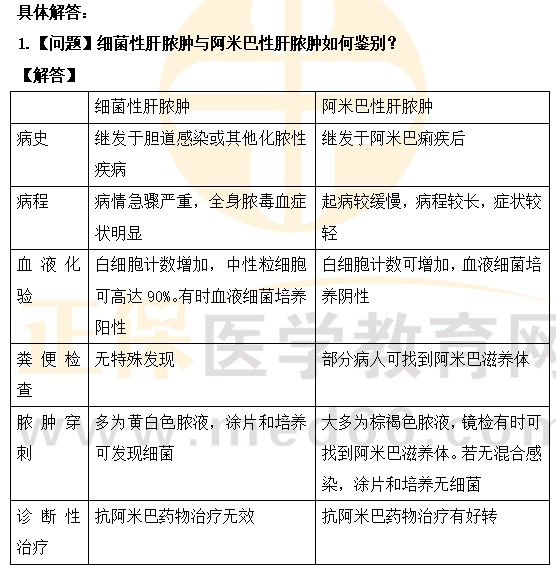 1.【問題】細(xì)菌性肝膿腫與阿米巴性肝膿腫如何鑒別?