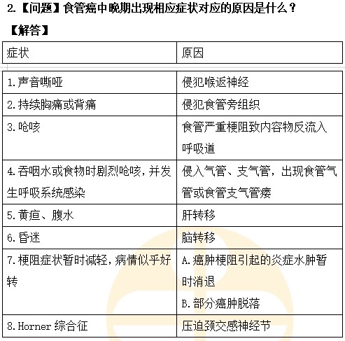 2.【問題】食管癌中晚期出現(xiàn)相應(yīng)癥狀對(duì)應(yīng)的原因是什么?