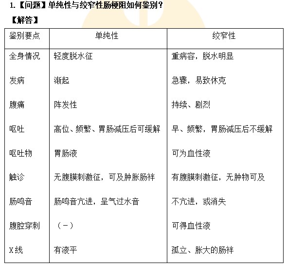 1.【問題】單純性與絞窄性腸梗阻如何鑒別?