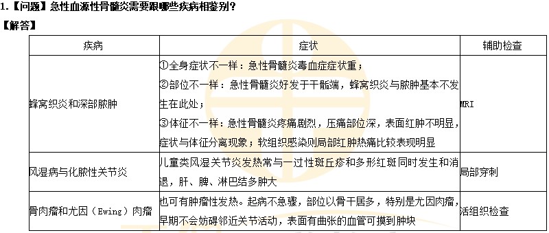 1.【問題】急性血源性骨髓炎需要跟哪些疾病相鑒別?
