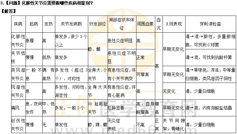 3.【問題】化膿性關(guān)節(jié)炎需要跟哪些疾病相鑒別?