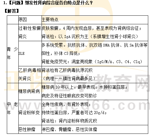 1.【問題】繼發(fā)性腎病綜合征各自特點是什么?