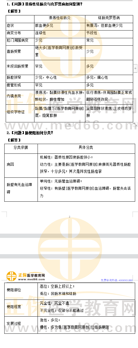 醫(yī)學教育網(wǎng)臨床執(zhí)業(yè)醫(yī)師:《答疑周刊》2023年第9期已更新,消化系統(tǒng)中潰瘍性結腸炎與克羅恩病還傻傻分不清楚嗎?不著急,一張表格幫你搞定這兩個疾??;機械性腸梗阻與絞窄性腸梗阻是怎么分類的,希望通過表格幫大家搞清楚,弄明白。