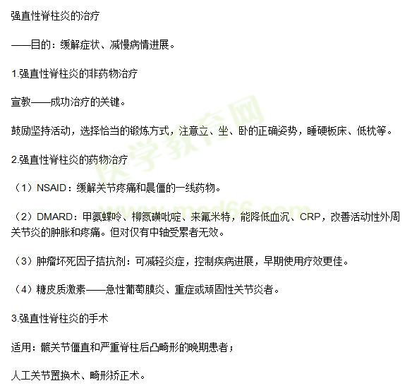 臨床執(zhí)業(yè)醫(yī)師風(fēng)濕免疫系統(tǒng)考點:強直性脊柱炎的治療