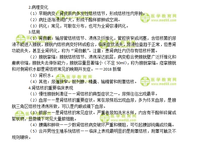 關(guān)于2019年臨床執(zhí)業(yè)醫(yī)師考試泌尿系統(tǒng)中“腎結(jié)核的病理、臨床表現(xiàn)”大家是否已經(jīng)掌握呢?為方便大家備考,針對“腎結(jié)核的病理、臨床表現(xiàn)”此部分知識(shí)點(diǎn)與試題小編為大家做以下匯總。內(nèi)容如下: