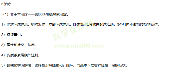以上為““腰椎間盤突出癥的診斷與鑒別診斷、治療”考點(diǎn)”全部?jī)?nèi)容,希望可以幫到您!更多的關(guān)于考試資料的文章隨時(shí)關(guān)注醫(yī)學(xué)教育網(wǎng)臨床執(zhí)業(yè)醫(yī)師輔導(dǎo)精華欄目!