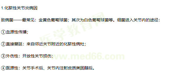 備考2019年臨床執(zhí)業(yè)醫(yī)師考試的考生,運(yùn)動系系統(tǒng)內(nèi)容是否有掌握呢?為提高大家備考效率,在此醫(yī)學(xué)教育網(wǎng)小編為大家整理“化膿性關(guān)節(jié)炎”考點(diǎn),內(nèi)容如下: