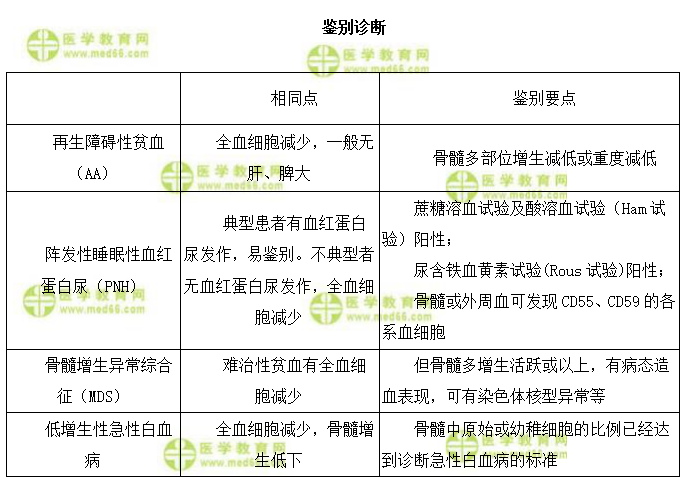以上關(guān)于“再生障礙性貧血鑒別診斷”的文章由醫(yī)學(xué)教育網(wǎng)編輯整理搜集,希望可以幫助到大家,更多的文章隨時關(guān)注醫(yī)學(xué)教育網(wǎng)臨床執(zhí)業(yè)醫(yī)師考試欄目!