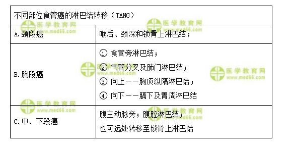 關(guān)于臨床執(zhí)業(yè)醫(yī)師消化系統(tǒng)中“不同部位食管癌的淋巴結(jié)轉(zhuǎn)移 ”相關(guān)考點(diǎn),參加2019年臨床執(zhí)業(yè)醫(yī)師考試的考生是否掌握呢?為方便大家記憶,在此醫(yī)學(xué)教育網(wǎng)小編為大家整理如下內(nèi)容: