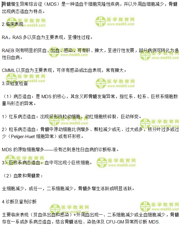 關于臨床執(zhí)業(yè)醫(yī)師《血液系統(tǒng)》考點“骨髓增生異常綜合征”,相信大家都想掌握,為方便大家備考,在此醫(yī)學教育網小編為大家整理如下內容: