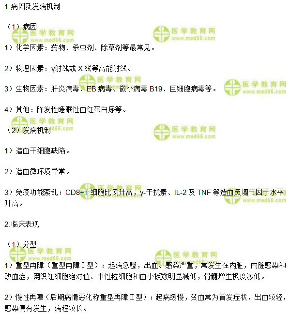 關于臨床執(zhí)業(yè)醫(yī)師《血液系統(tǒng)》考點“再生障礙性貧血”,相信大家都想掌握,為方便大家備考,在此醫(yī)學教育網(wǎng)小編為大家整理如下內(nèi)容:
