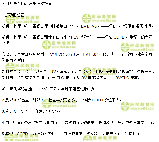 關(guān)于臨床執(zhí)業(yè)醫(yī)師《呼吸系統(tǒng)》:慢性阻塞性肺疾病的輔助檢查,相關(guān)考點(diǎn),相信備考2020年臨床執(zhí)業(yè)醫(yī)師考試的考生都在關(guān)注,為方便大家學(xué)習(xí),在此醫(yī)學(xué)教育網(wǎng)小編為大家整理如下內(nèi)容: